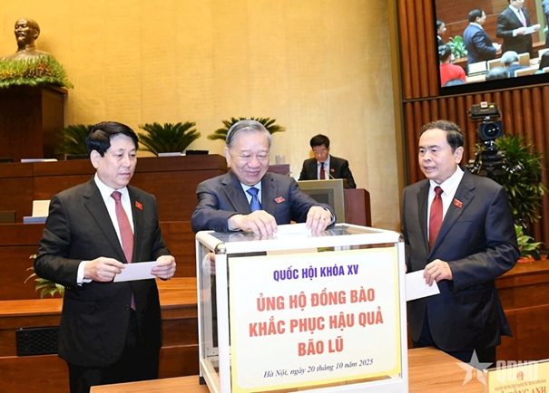 Tại phiên trù bị, Quốc hội tổ chức quyên góp ủng hộ đồng bào khắc phục hậu quả thiên tai, bão lũ.